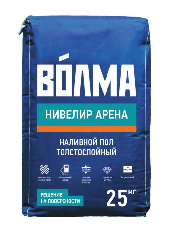 «ВОЛМА-Нивелир Арена» - сухая смесь для выравнивания пола на смешанных вяжущих, фракционированных натуральных наполнителях и модифицирующих добавках. Высокопрочная, безусадочная